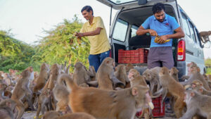 Monkeys too suffer greatly. “The monkeys that live in the cities mostly remain hungry… When they do not get anything, they try to enter people’s houses… and people behave cruelly towards them. Many times, people shoot them, pour hot water on them, hit them with bricks and stones.”
