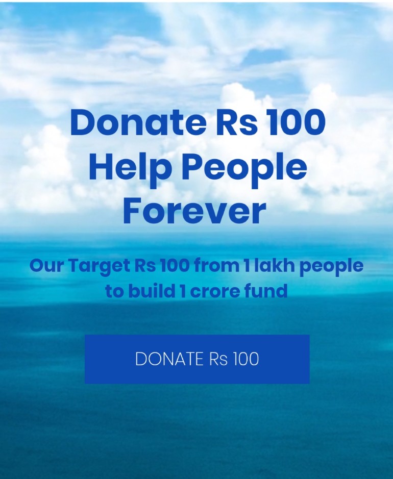 I have started this hundred rupees fund to help people when in need specially for eradicating property by helping one person at a time and get them out of poverty. Not everyone gets lucky and able to successfully raise funds online , we are raising funds in advance so we can give back when a person in need