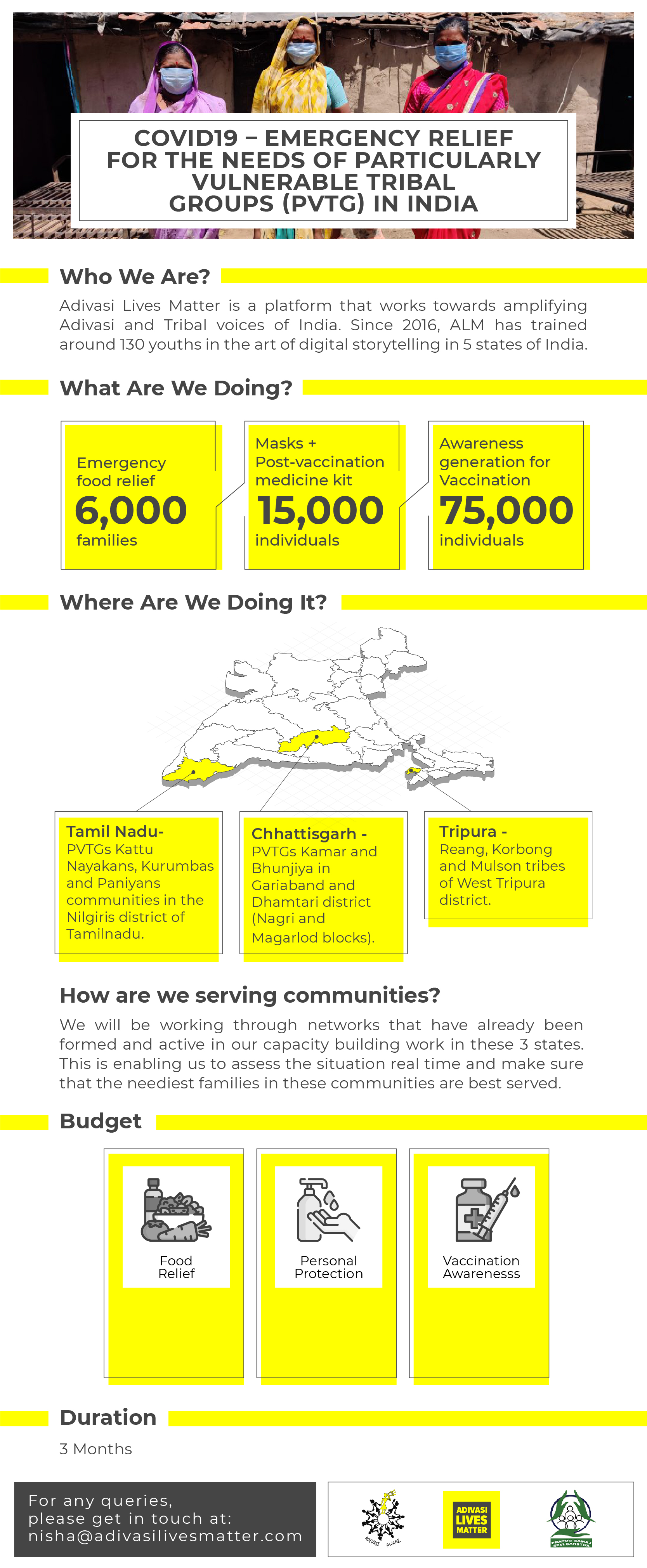 Adivasi Lives Matter (ALM), a platform that has been amplifying Adivasi and Tribal voices since 2016 (adivasilivesmatter.com), needs your help with carrying forward our ongoing campaign to send relief material to Adivasi and Tribal groups of Tripura, Tamil Nadu, and Chhattisgarh who are worst-affected by the health crisis as well as the lockdown.