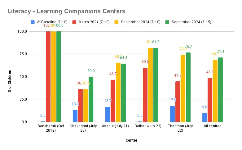 We are absolutely thrilled to shout it out loud, "Yes, we have done it! Today, 71.4% of our children between 7-15 years are reading and many are developing love for it!" We entered the new academic year with an ambitious, scary, but very crucial goal for our children: that at least 70% of the children above age 7 should be able to read by October 2024! And we have done it!