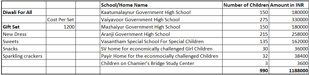 We are hoping to ensure all these 990 children get the "Diwali Gift Set" with your kind support.