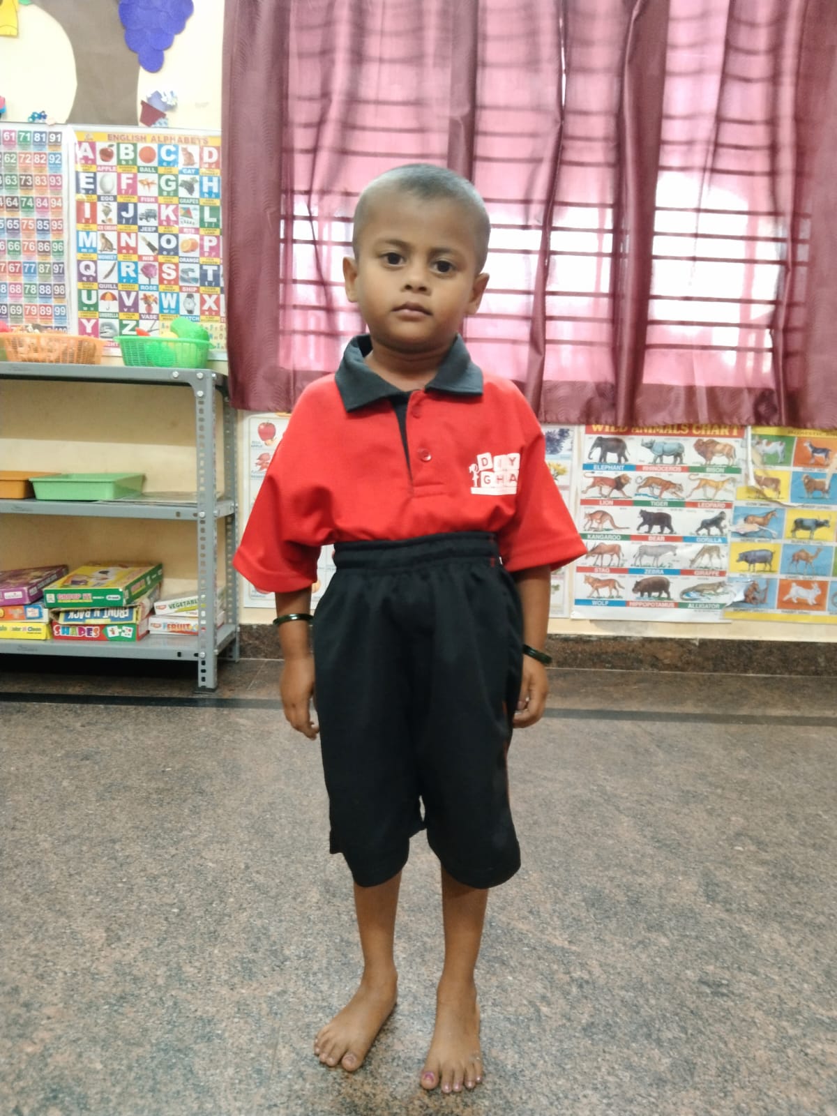 Ismail and his family moved to Bangalore 5 years ago from Bangladesh. His parents work as Ragpickers. Although Ismail is going to be 6 years old, he has never been to school! He used to be left alone in the community and would join those segregating the waste. Ismail joined our Diya Ghar Centre in Darahalli. He has 9 siblings and he is the very first child to go to school!