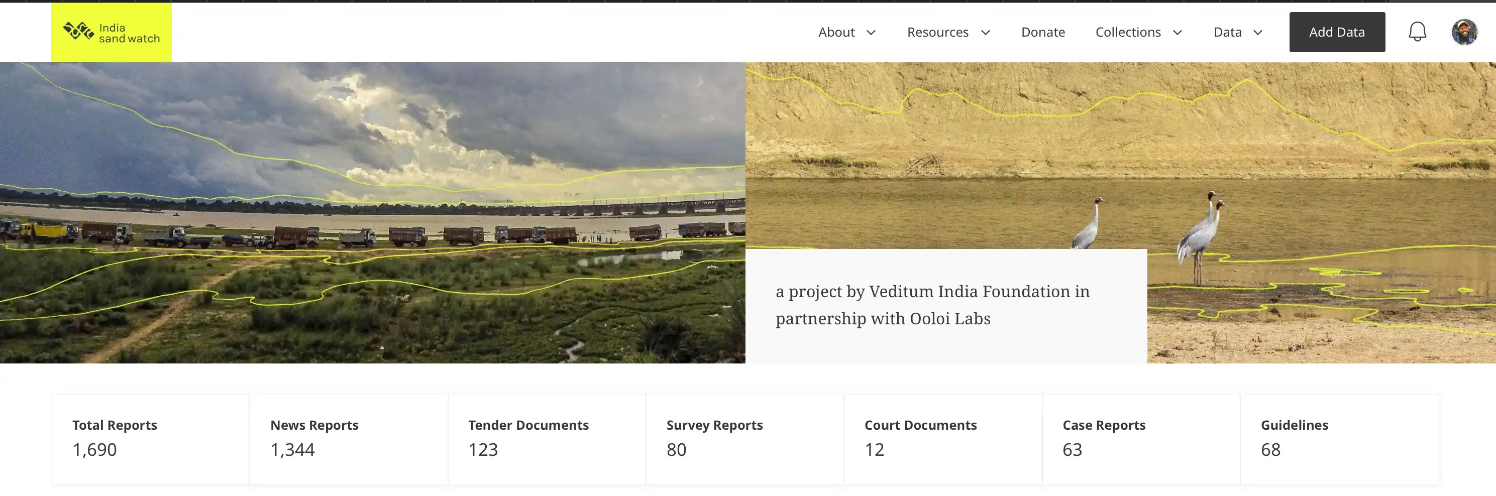 India Sand Watch is an open-data project enabling collection, annotation & archiving of data related to sand mining in India, to create accountability in this unregulated and violent sector and ensure better governance and protection of our rivers.