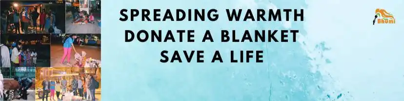 Bhumi has been helping poor survive the cold through their blanket distribution program every year. There is no better gift than providing warm clothing to the needy during winter season. Lakhs of homeless experience bitterness of winter and are at a great risk of suffering from severe illnesses. This winter, become a part of our mission. There cannot be a bigger satisfaction than saving someone’s life. You can be a part of it either by donating blankets which you have (less used / new ones) or donate your contribution here.