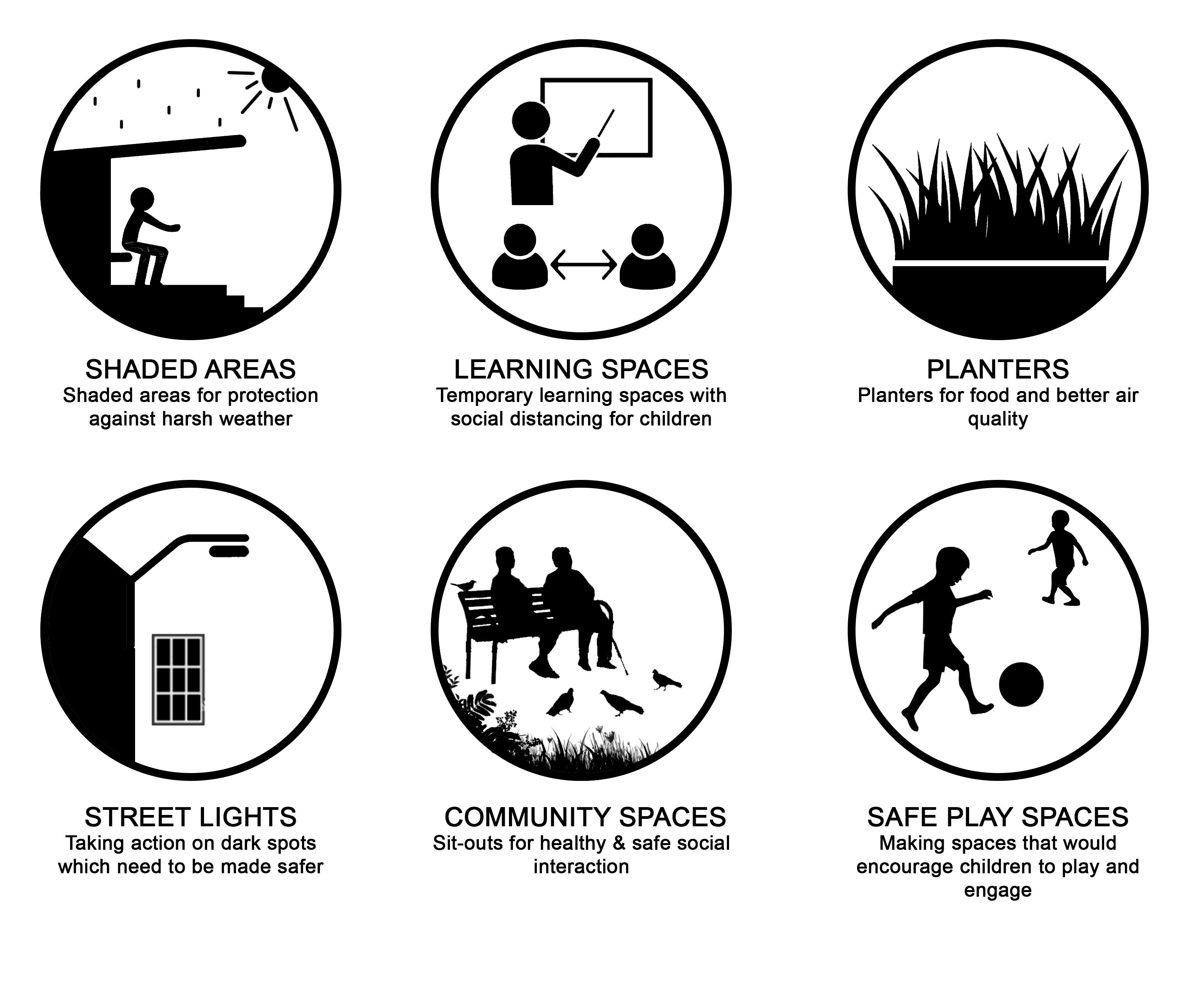 Basic activities like cooking, washing happen in the same open space which is the road, play area for children and open space of the house. There is a lack of proper roofing, a basic requirement for protection against sun and rain. The middle-aged and youth find themselves without any space to engage productively and deal with the mental stress caused due to the pandemic. With a reduced scope of physical activities during the pandemic, there is also an increase in incidents of mental & physical violence. Lack of planning in physical space has impacted living conditions in slums.