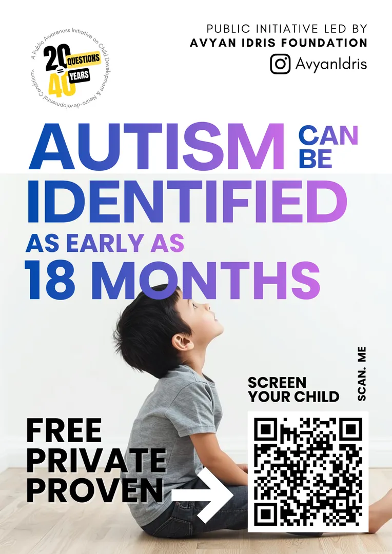 Early detection of developmental or neuro-developmental conditions, such as autism, through a simple 20-question screening can transform a lifetime—laying stronger foundations for the next 40 years of a child’s life.
