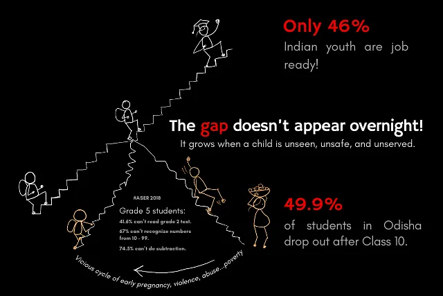 In Odisha, 49.9% of students drop out after Class 10 (Source: UDISE+, 2022-23). The highest in India. Yet, they remain: Unseen. Unsafe. Unserved. Is it fair?